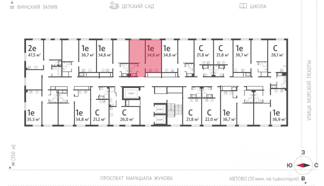 Продается 1-комнатная квартира в ЖК "Морская миля" на 23 этаже. Общая площадь составляет 34.60 кв. м. Квартира с чистовой отделкой. Жилой комплекс "Морская миля" располагается по адресу Санкт-Петербург, Красносельский.