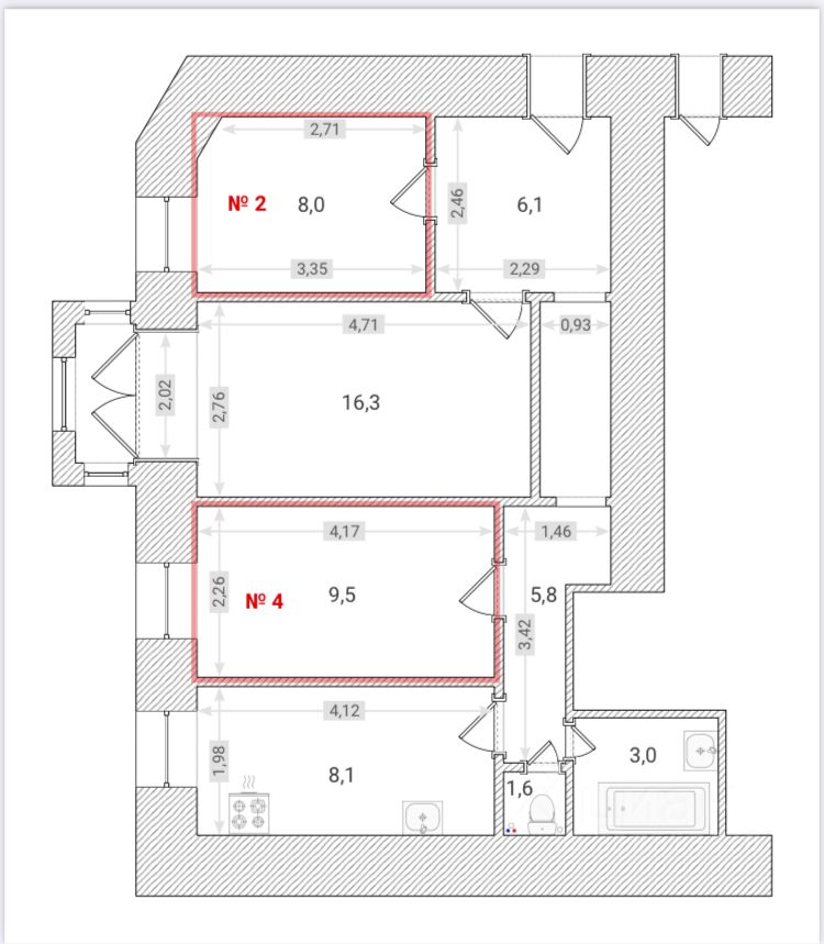 Площадь комнат