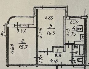 Кухня 7,3 кв.м. Жилые комнаты: 15,7 кв.м + 16,5 кв.м; Просторная прихожая: 8,8 кв.м; В комнате балкон: 2,4 кв.м.; Ванная комната: 2,6 кв.м.;