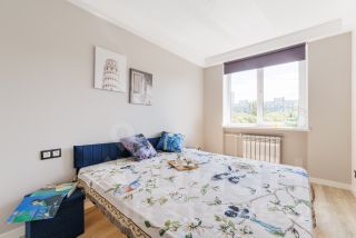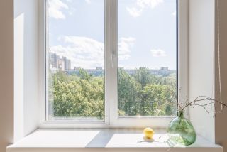 Общая площадь квартиры 60 кв.м: продуманная планировка, большие окна и световые сценарии создают простор и наполняют этот простор сияющим воздухом.