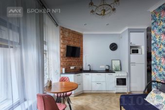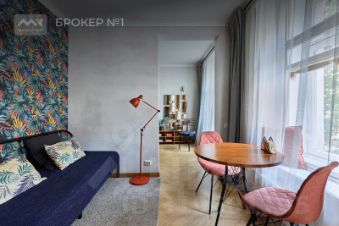 Второй вход со двора, со стороны Старорусской улицы, ведет в аккуратную однокомнатную квартиру с кухней-гостиной, спальней, гардеробной и просторной ванной.