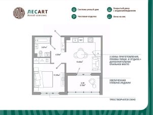 Продаётся 1-комнатная квартира 115, общей площадью 38.11 кв.м., на 5. Дом комфорт-класса, 12 этажей, в окружении леса и малоэтажной застройки. Проект с умным домом. Передача квартир в апреле 2026г.