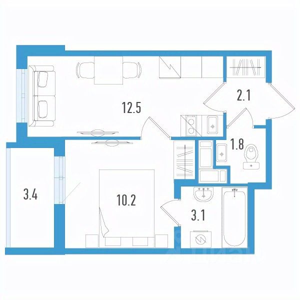 Продаётся 1-комнатная квартира в сданном доме (Старорусский пр-т, 3к2 (Дом 1)), срок сдачи: II-кв. 2025, общей площадью 31.4 кв.м., на 11 этаже.