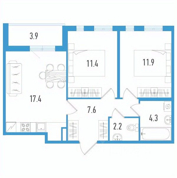 Продаётся 2-комнатная квартира в сданном доме (Старорусский пр-т, 3к2 (Дом 1)), срок сдачи: II-кв. 2025, общей площадью 56.8 кв.м., на 2 этаже.