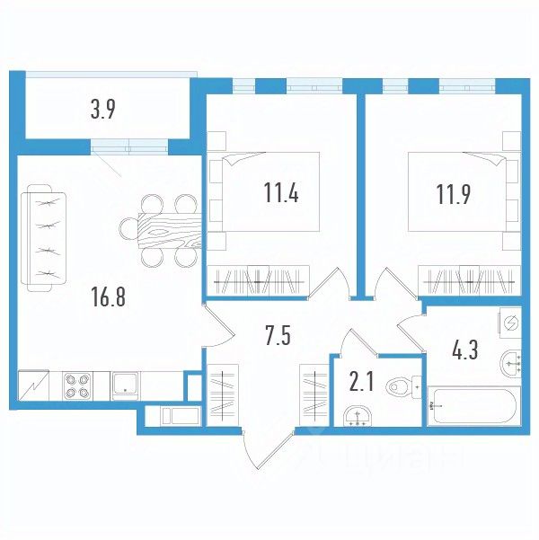Продаётся 2-комнатная квартира в сданном доме (Старорусский пр-т, 3к2 (Дом 1)), срок сдачи: II-кв. 2025, общей площадью 56 кв.м., на 5 этаже.