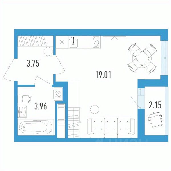 Студия от 18,7 м²