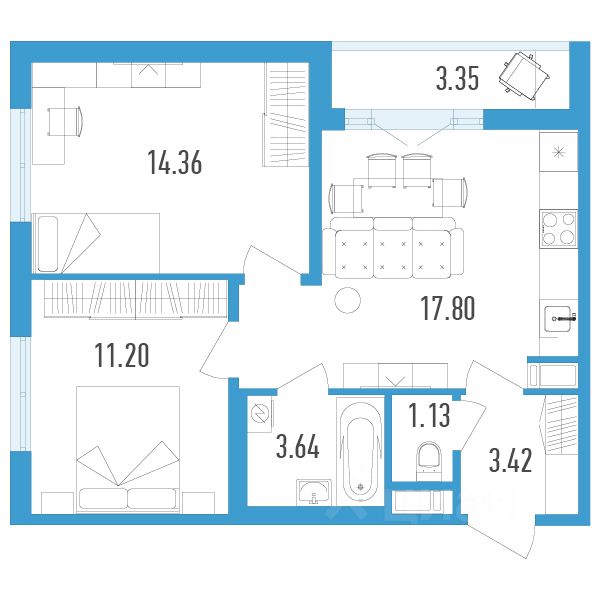 Продаётся 2-комнатная квартира в строящемся доме (Дом 1), срок сдачи: IV-кв. 2026, общей площадью 53.23 кв.м., на 5 этаже. Новый жилой комплекс "AEROCITY 4" от застройщика "ГК Лидер Групп" расположен по адресу: Россия, Санкт-Петербург, пос. Шушары, Школьная улица