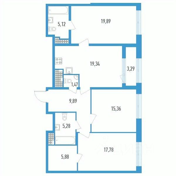 Продаётся 3-комнатная квартира в строящемся доме (Секции 15 и 16), срок сдачи: IV-кв. 2025, общей площадью 101.66 кв.м., на 19 этаже.