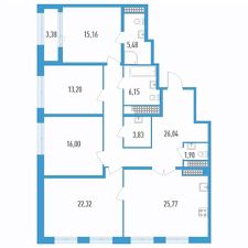 Продаётся 4-комнатная квартира в строящемся доме (Секции 15 и 16), срок сдачи: II-кв. 2026, общей площадью 137.54 кв.м., на 19 этаже.