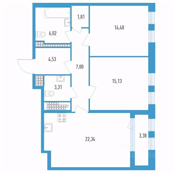 Продаётся 2-комнатная квартира в строящемся доме (Дом 1), срок сдачи: IV-кв. 2025, общей площадью 76.23 кв.м., на 20 этаже.