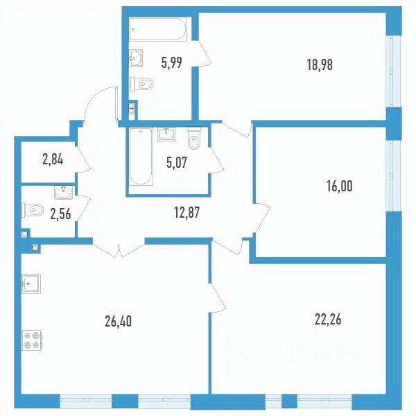 Продаётся 3-комнатная квартира в строящемся доме (Дом 1), срок сдачи: IV-кв. 2025, общей площадью 112.97 кв.м., на 4 этаже.