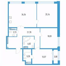 Продаётся 2-комнатная квартира в строящемся доме (Дом 1), срок сдачи: IV-кв. 2025, общей площадью 130.93 кв.м., на 12 этаже.