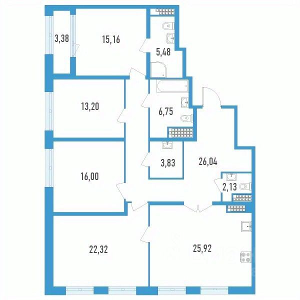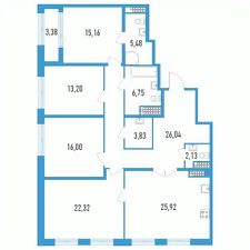 Продаётся 4-комнатная квартира в строящемся доме (Секции 15 и 16), срок сдачи: IV-кв. 2025, общей площадью 138.52 кв.м., на 14 этаже.