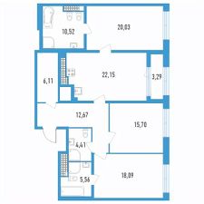 Продаётся 3-комнатная квартира в строящемся доме (Дом 1), срок сдачи: IV-кв. 2025, общей площадью 116.89 кв.м., на 17 этаже.