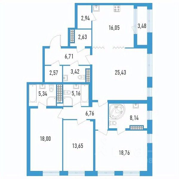 Продаётся 4-комнатная квартира в строящемся доме (Дом 1), срок сдачи: IV-кв. 2025, общей площадью 137.3 кв.м., на 17 этаже.
