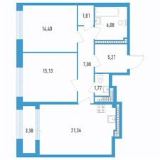 Продаётся 2-комнатная квартира в строящемся доме (Дом 1), срок сдачи: IV-кв. 2025, общей площадью 74.51 кв.м., на 18 этаже.