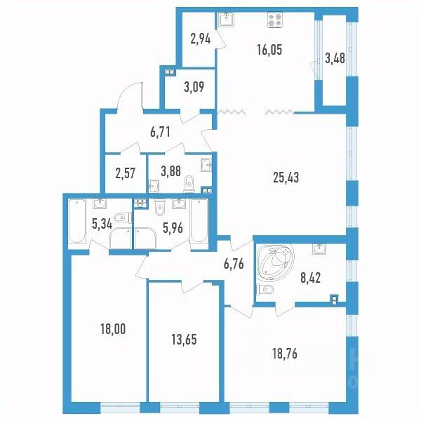 Продаётся 4-комнатная квартира в строящемся доме (Секции 15 и 16), срок сдачи: IV-кв. 2025, общей площадью 139.3 кв.м., на 5 этаже.