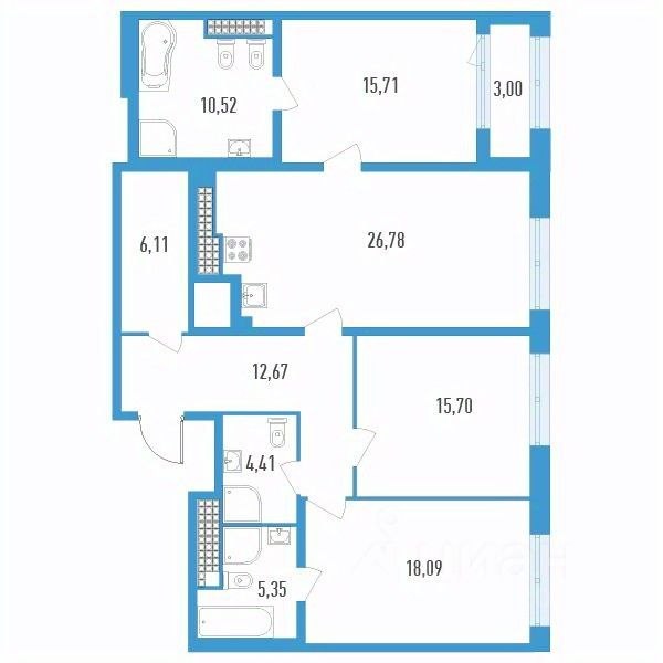 Продаётся 3-комнатная квартира в строящемся доме (Дом 1), срок сдачи: IV-кв. 2025, общей площадью 116.84 кв.м., на 19 этаже.