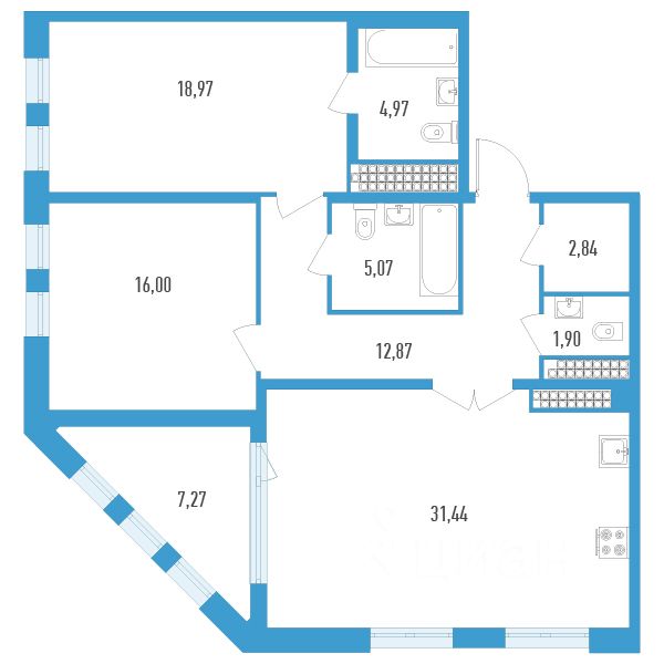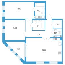 Продаётся 2-комнатная квартира в строящемся доме (Дом 1), срок сдачи: IV-кв. 2025, общей площадью 97.7 кв.м., на 20 этаже.