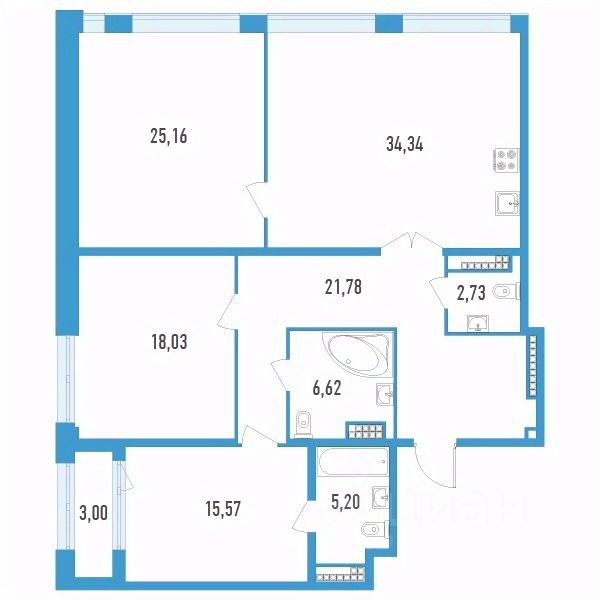 Продаётся 2-комнатная квартира в строящемся доме (Дом 1), срок сдачи: IV-кв. 2025, общей площадью 130.93 кв.м., на 12 этаже.