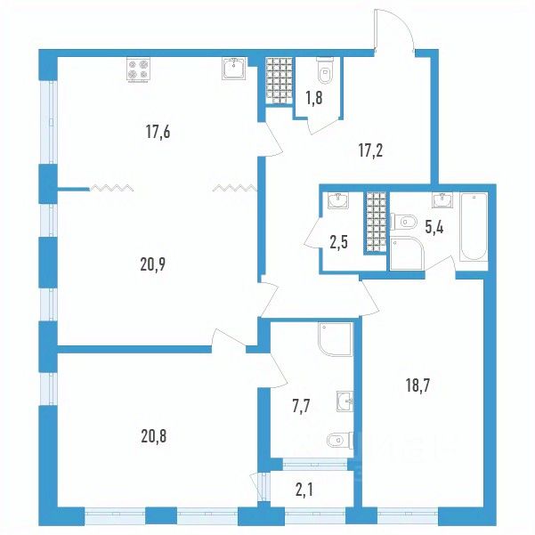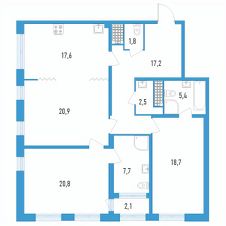 Продаётся 3-комнатная квартира в строящемся доме (Дом 1), срок сдачи: IV-кв. 2025, общей площадью 113.7 кв.м., на 16 этаже.