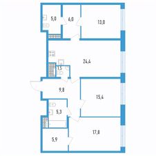 Продаётся 3-комнатная квартира в строящемся доме (Секции 15 и 16), срок сдачи: IV-кв. 2025, общей площадью 104.1 кв.м., на 17 этаже.