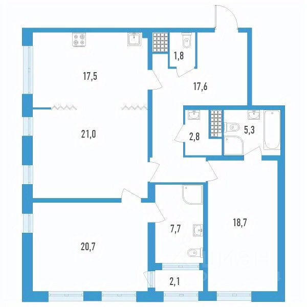Продаётся 3-комнатная квартира в строящемся доме (Секции 15 и 16), срок сдачи: IV-кв. 2025, общей площадью 114.2 кв.м., на 13 этаже.