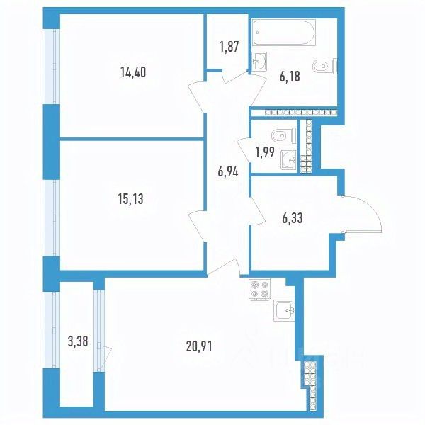 Продаётся 2-комнатная квартира в строящемся доме (Дом 1), срок сдачи: IV-кв. 2025, общей площадью 75.3 кв.м., на 15 этаже.