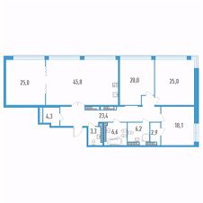 Продаётся 4-комнатная квартира в строящемся доме (Секции 15 и 16), срок сдачи: II-кв. 2026, общей площадью 181.9 кв.м., на 18 этаже.
