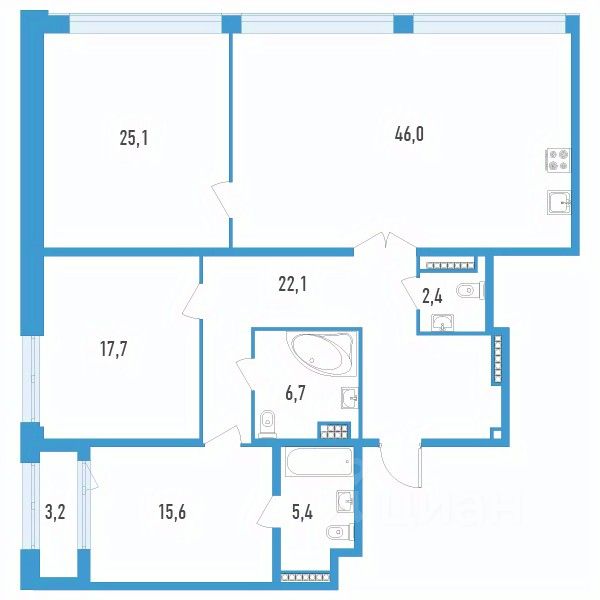 Продаётся 3-комнатная квартира в строящемся доме (Дом 1), срок сдачи: IV-кв. 2025, общей площадью 142.6 кв.м., на 10 этаже.