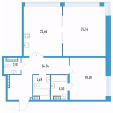 Продаётся 3-комнатная квартира в строящемся доме (Дом 1), срок сдачи: IV-кв. 2025, общей площадью 142.1 кв.м., на 11 этаже.