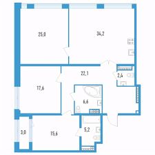 Продаётся 2-комнатная квартира в строящемся доме (Дом 1), срок сдачи: IV-кв. 2025, общей площадью 130.2 кв.м., на 12 этаже.