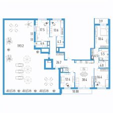 Продаётся 5-комнатная квартира в сданном доме (Александра Грина, 2к2), срок сдачи: II-кв. 2023, общей площадью 224.4 кв.м., на 14 этаже.