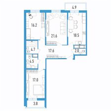 Продаётся 3-комнатная квартира в сданном доме (Александра Грина, 2к2), срок сдачи: II-кв. 2023, общей площадью 105.5 кв.м., на 6 этаже.