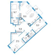 Продаётся 3-комнатная квартира в сданном доме (Александра Грина, 2к2), срок сдачи: II-кв. 2023, общей площадью 127.8 кв.м., на 7 этаже.
