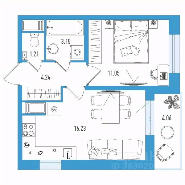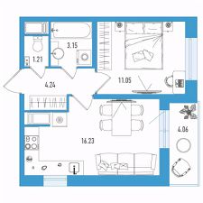 Продаётся 1-комнатная квартира в строящемся доме (Дом 1), срок сдачи: II-кв. 2027, общей площадью 37.91 кв.м., на 12 этаже.