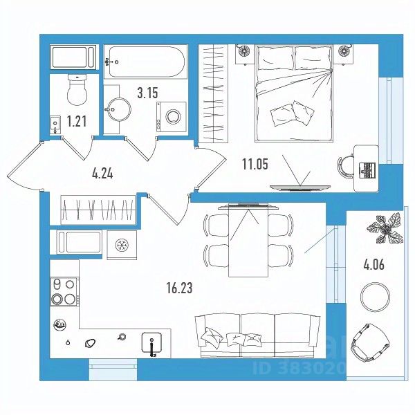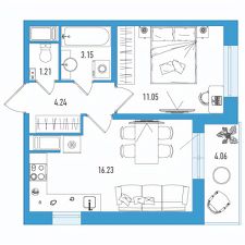 Продаётся 1-комнатная квартира в строящемся доме (Дом 1), срок сдачи: II-кв. 2027, общей площадью 37.91 кв.м., на 6 этаже.