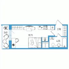 Продаётся студия в строящемся доме (Дом 1), срок сдачи: II-кв. 2027, общей площадью 27.95 кв.м., на 4 этаже.