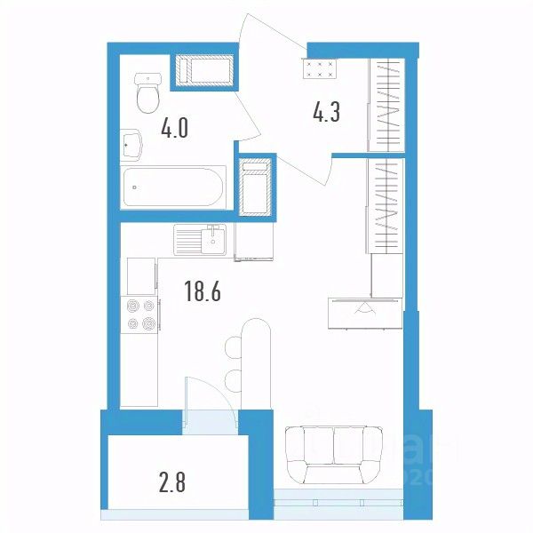 Продаётся студия в сданном доме (Головнина, 3к1), срок сдачи: II-кв. 2023, общей площадью 28.3 кв.м., на 12 этаже.