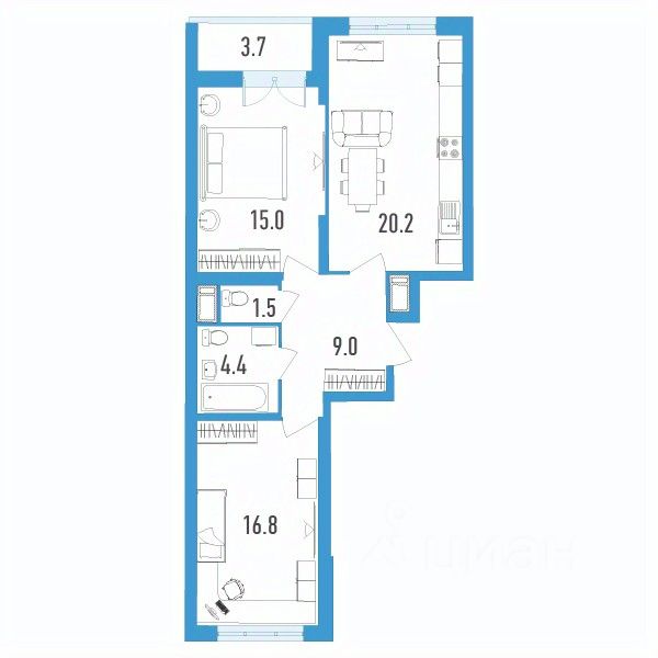 Продаётся 2-комнатная квартира в сданном доме (Головнина, 3к1), срок сдачи: II-кв. 2023, общей площадью 68.8 кв.м., на 18 этаже.