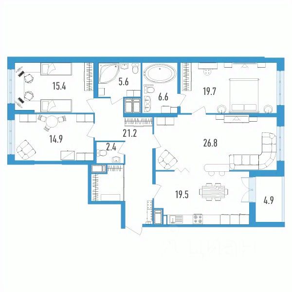 Продаётся 4-комнатная квартира в сданном доме (Головнина, 3к1), срок сдачи: II-кв. 2023, общей площадью 134.6 кв.м., на 10 этаже.