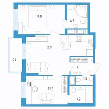 Продаётся 2-комнатная квартира в сданном доме (Головнина, 3к1), срок сдачи: II-кв. 2023, общей площадью 64 кв.м., на 7 этаже.