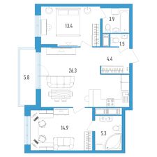 Продаётся 2-комнатная квартира в сданном доме (Головнина, 3к1), срок сдачи: II-кв. 2023, общей площадью 71.4 кв.м., на 7 этаже.