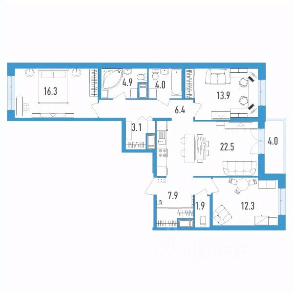 Продаётся 3-комнатная квартира в сданном доме (Головнина, 3к1), срок сдачи: II-кв. 2023, общей площадью 95.2 кв.м., на 9 этаже.