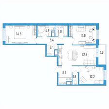 Продаётся 3-комнатная квартира в сданном доме (Головнина, 3к1), срок сдачи: II-кв. 2023, общей площадью 95.5 кв.м., на 18 этаже.