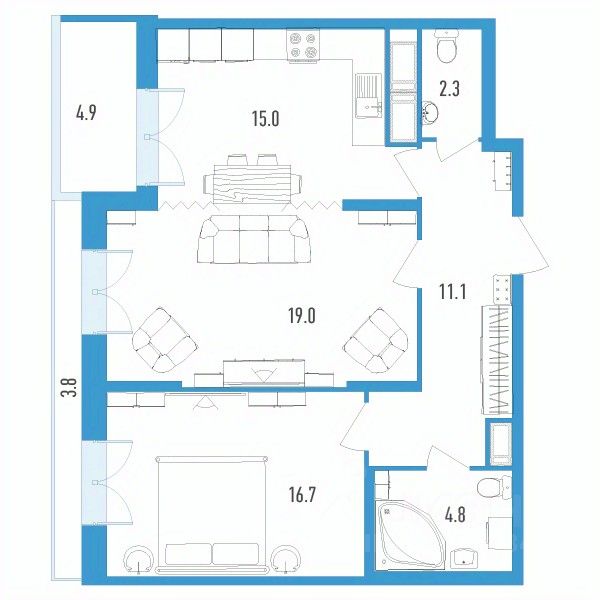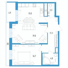Продаётся 2-комнатная квартира в сданном доме (Головнина, 3к1), срок сдачи: II-кв. 2023, общей площадью 72.5 кв.м., на 5 этаже.