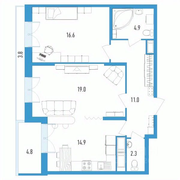 Продаётся 2-комнатная квартира в сданном доме (Головнина, 3к1), срок сдачи: II-кв. 2023, общей площадью 72.2 кв.м., на 11 этаже.