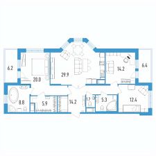 Продаётся 3-комнатная квартира в сданном доме (Головнина, 3к1), срок сдачи: II-кв. 2023, общей площадью 118.7 кв.м., на 4 этаже.