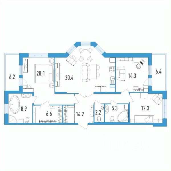 Продаётся 3-комнатная квартира в сданном доме (Головнина, 3к1), срок сдачи: II-кв. 2023, общей площадью 120.6 кв.м., на 2 этаже.