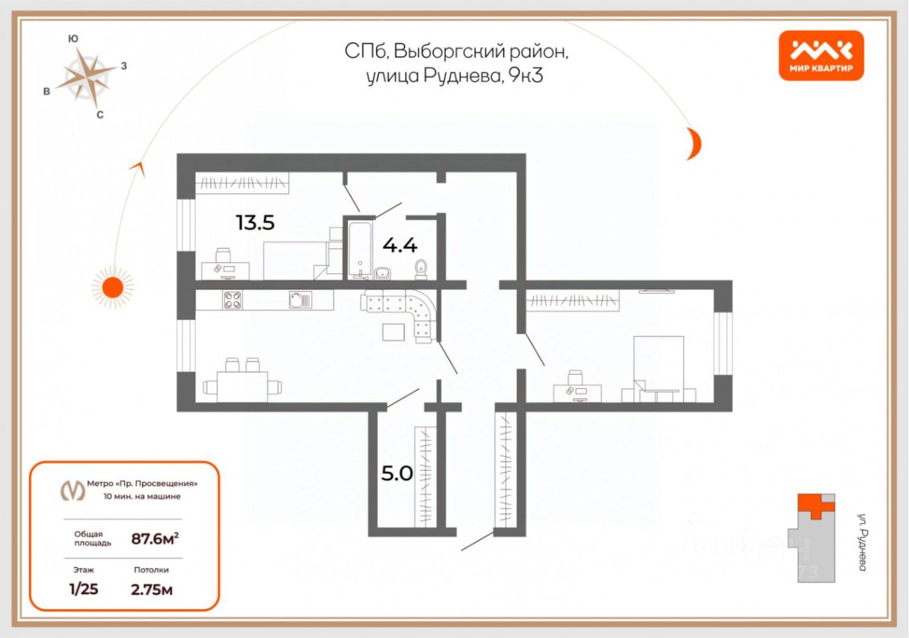 Арт. 109531091 Уют и простор в зелёном уголке Выборгского района — квартира, в которую хочется возвращаться